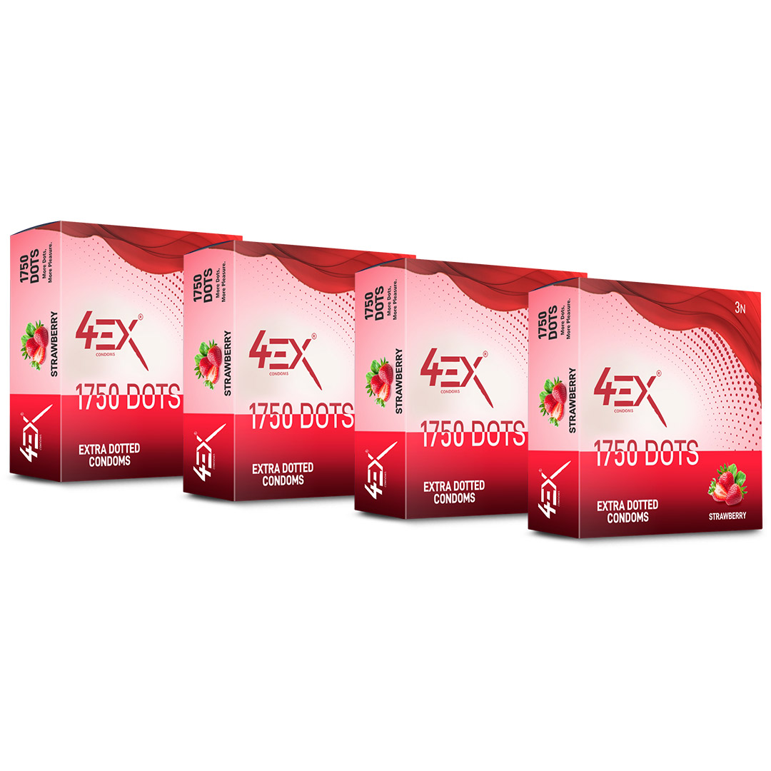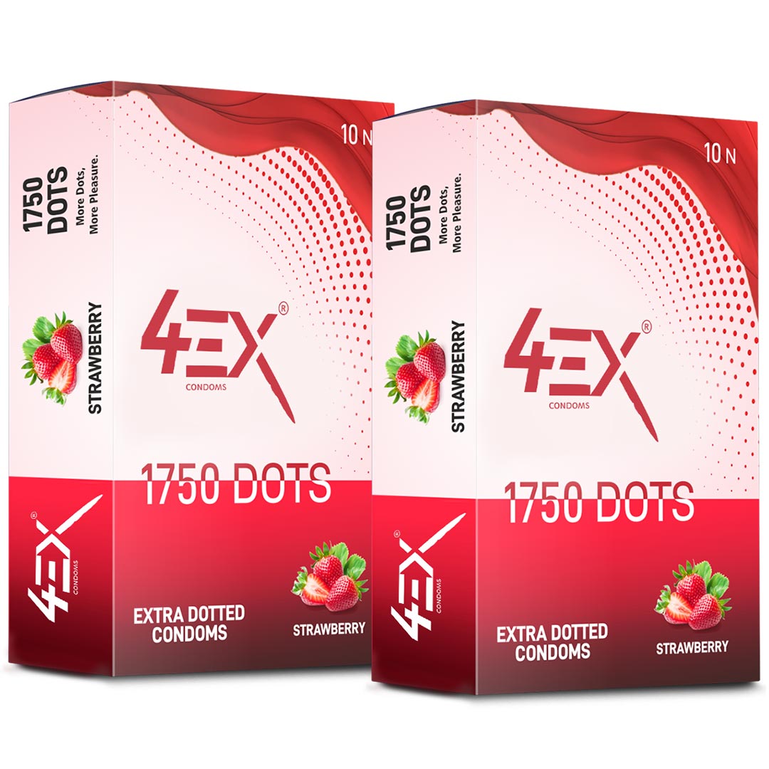 4ex 1750 Extra Dotted Strawberry Flavor Condoms 10s