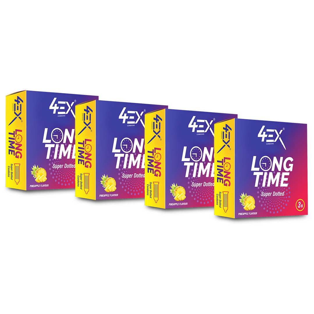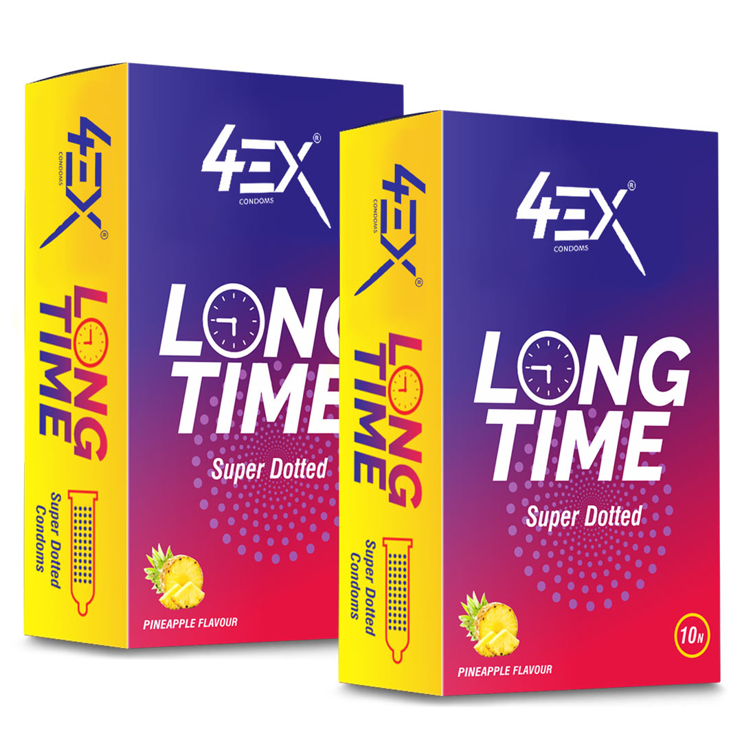 4ex Long-Time Super Dotted Condoms Pineapple Flavour 10s