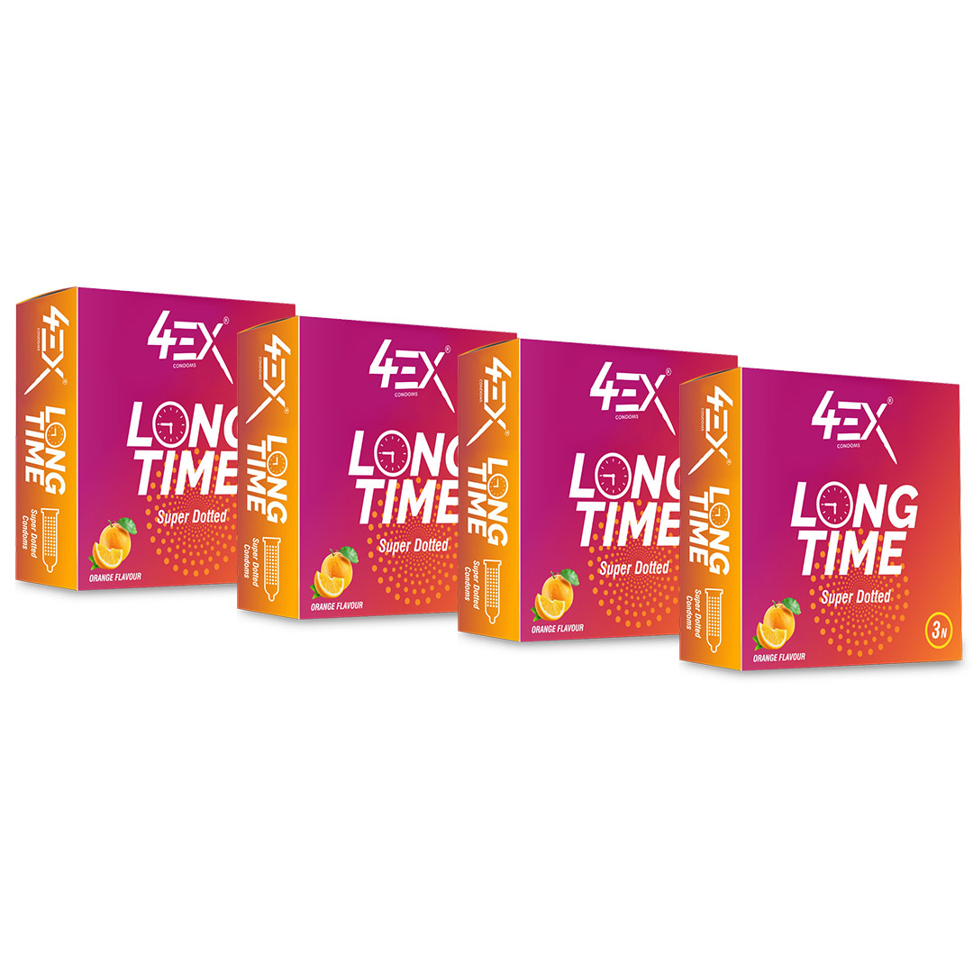 4ex Long-time Super Dotted Condoms Orange Flavor 3s