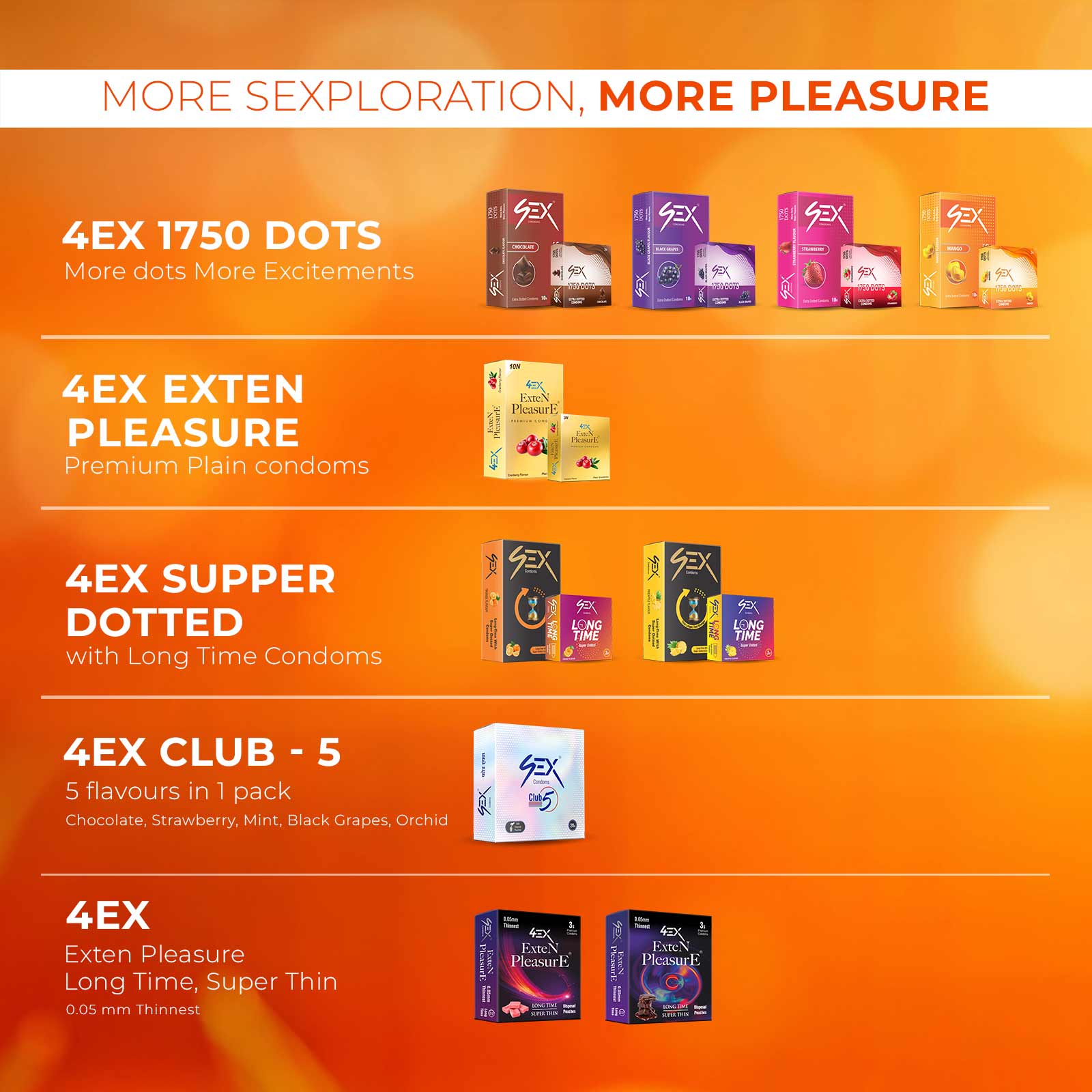 4EX Condoms Long-Time Super Dotted Orange Flavour (3Condoms Per Pack) Enhance endurance and intensify pleasure with 4EX Long-Time Super Dotted Condoms, thoughtfully designed for lasting performance and ultimate stimulation. Infused with a refreshing orange flavour, these condoms feature 50% extra-big size dots, amplifying every sensation and making intimacy even more exciting. Made from premium latex and electronically tested, they guarantee safe, smooth, and satisfying experiences every time.